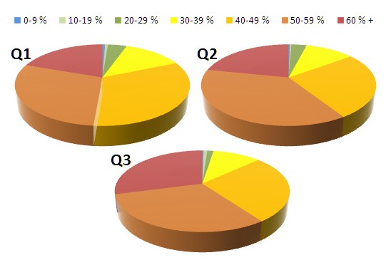 The following group of local authorities have all averaged more than 60% of their planning applications online throughout quarters 1-3, 2011, 22 of them have averaged greater than 70%. A fantastic performance I hope you’ll agree.