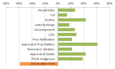 The only application type we saw a downturn in was Conservation Area applications.  This could be a result of changes in regulations, but we’ll keep an eye on it!