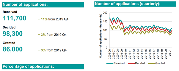 On 25 March 2021, the Ministry of Housing, Communities and Local Government (MHCLG) published their latest statistics regarding planning application submissions between October and December 2020. Their data showed that planning authorities in England received 111,700 applications for planning permission, up 11 per cent on the corresponding quarter of 2019. While the trends with this data mimic the data patterns the Planning Portal have been seeing over the last few months, the actual numbers differ greatly.