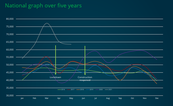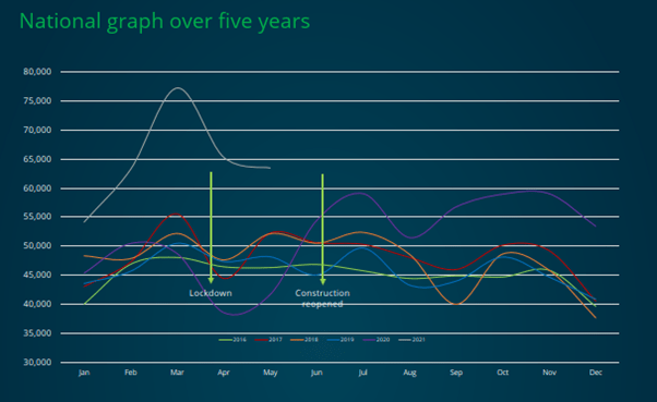 Over the last year, we have seen an unprecedented amount of applications submitted. However, over the last couple of months there has been a slight decrease in application numbers. Last month saw fewer applications submitted than the previous month – 63,497 in May 2021, compared to 65,357 in April 2021.