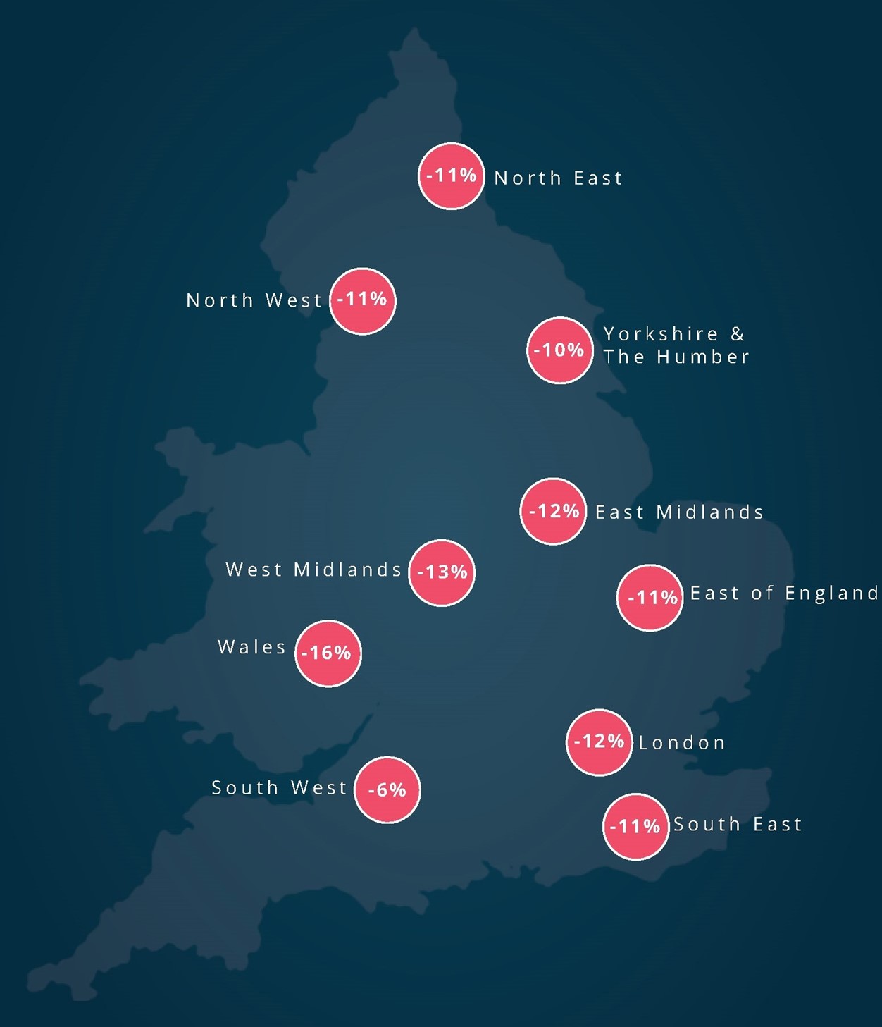The September Planning Market Insight Report has revealed that from April to July, the monthly total number of planning application submissions remained consistent but with varying percentage increases across the regions. However, the change from July to August has seen most regions experience a double-figure seasonal decline, with the exception of the South West, which is the only region down by a single figure – just 6%.