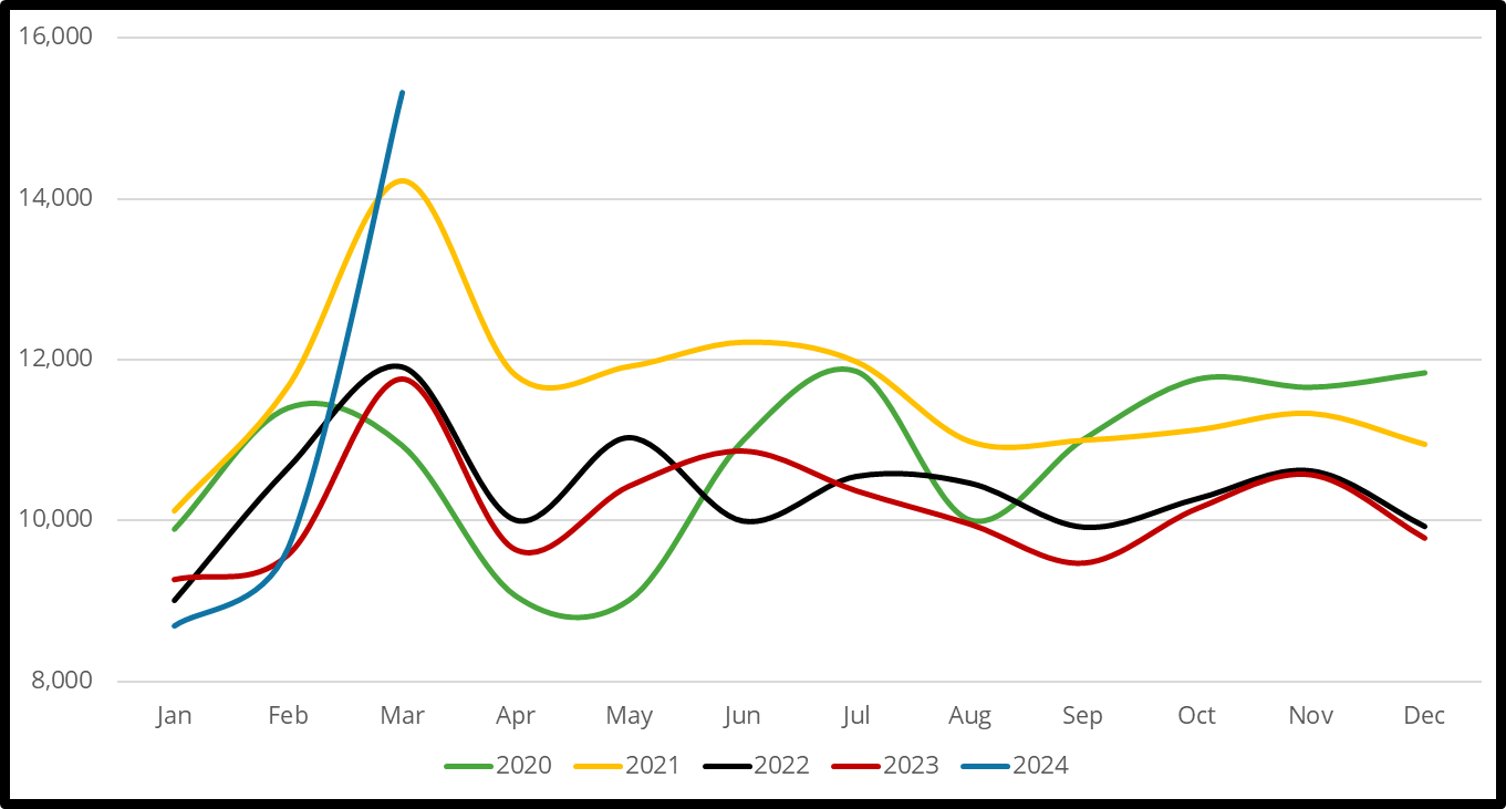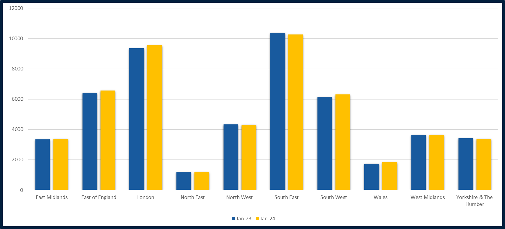 Most regions saw an increase in applications compared to March last year, with the South-East being the lowest with just an 8% increase, whilst Wales achieving the highest incline at 15% incline, which equates to an additional 331 applications.