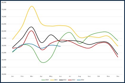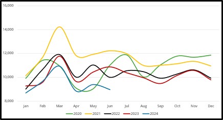 Full applications also dropped by around 2,000 against June 2023, with a monthly decrease of just over 600 compared to May 2024.
